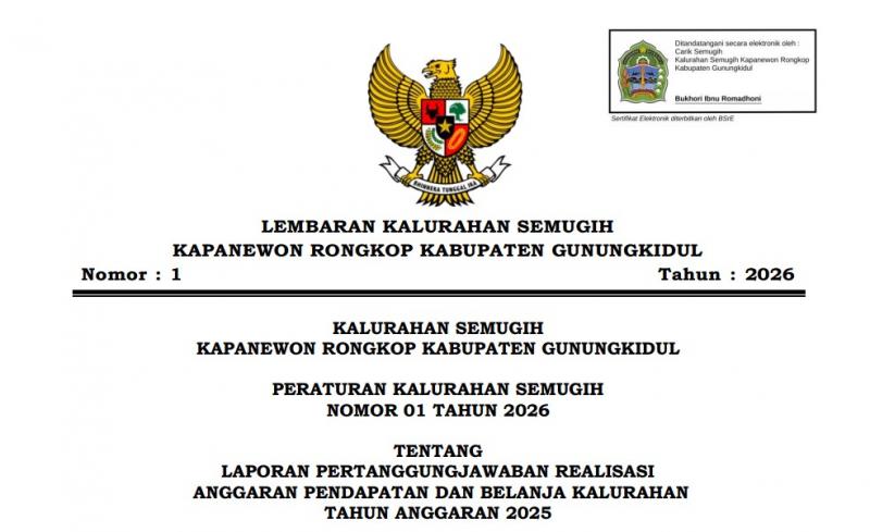 Lembaran Kalurahan Semugih Kapanewon Rongkop Kabupaten Gunungkidul Nomor 1 Tahun 2026.